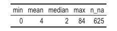)Notice that we use finalweight_25per to calculate the mean and the median, but not to calculate the minimum and maximum. Here, the minimum and maximum suggest that some children live very close to their school, but for at least one child, the school is pretty far from home!